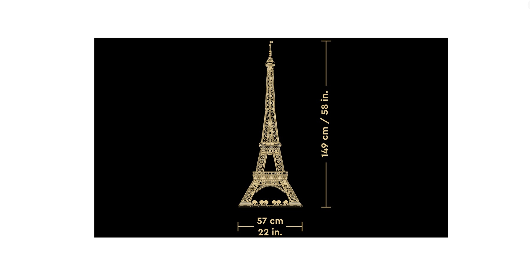 ابعاد سازه - این مدل بسیار خاص و زیبا بیش از 58.5 اینچ (149 سانتی متر) ارتفاع، 22.5 اینچ (57 سانتی متر) عرض و 22.5 اینچ (57 سانتی متر) عمق دارد که آن را به یکی از بزرگترین مجموعه های مدل LEGO تبدیل می کند.
